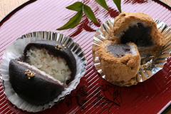 あんのあはぎと、きな粉のおはぎ(なかにあんが入っています)の2種類のおはぎを主に販売しております。